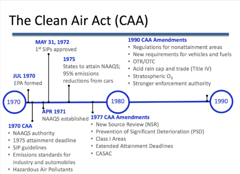 On December 31, 1970 Congress passed the Clean Air Act (CAA) to protect our nation’s human and ecological health from air pollution. Several amendments and rules associated with the CAA have provided the EPA and the states statutory authority to monitor and enforce air pollution laws. In establishing national baselines for air quality, the CAA prevents a race-to-the-bottom and requires all states to maintain air pollution levels that are protective of public health.