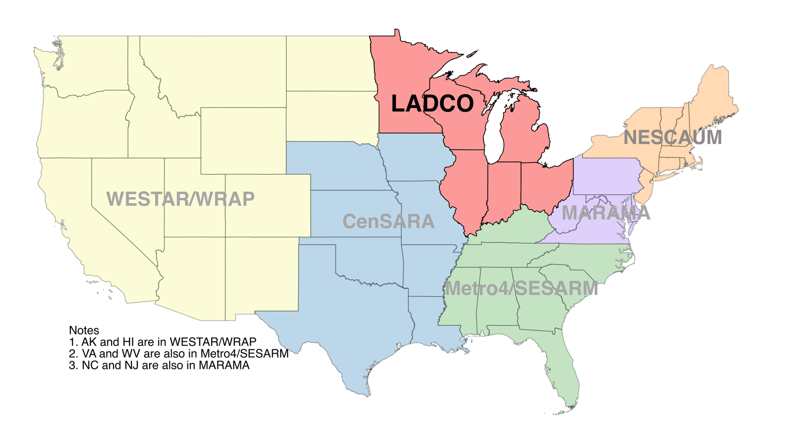 We are one of a group of six MJO’s (click map to expand). LADCO and the MJOs are funded primarily by U.S. EPA grants to the states under Section 105 of the Clean Air Act. We serve as regional liaisons between the SLTs, U.S. EPA Regional Offices, and U.S. EPA national offices.